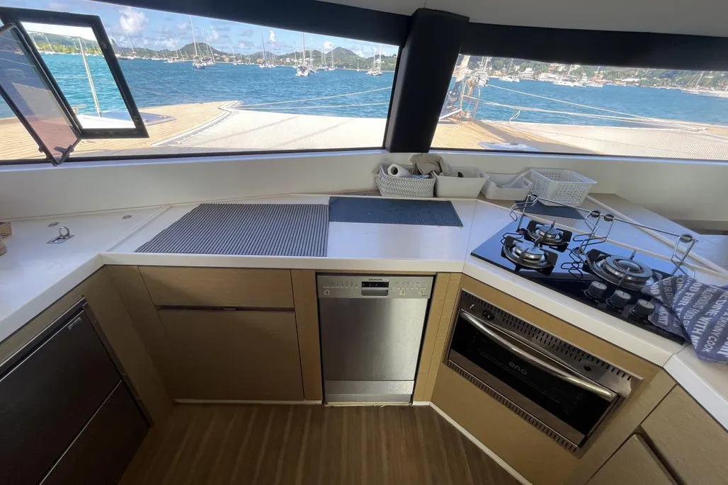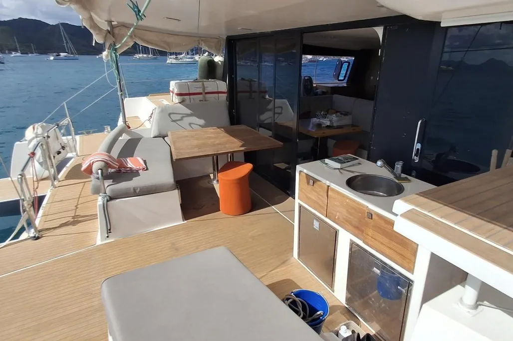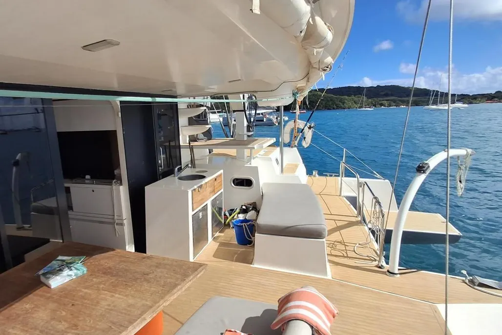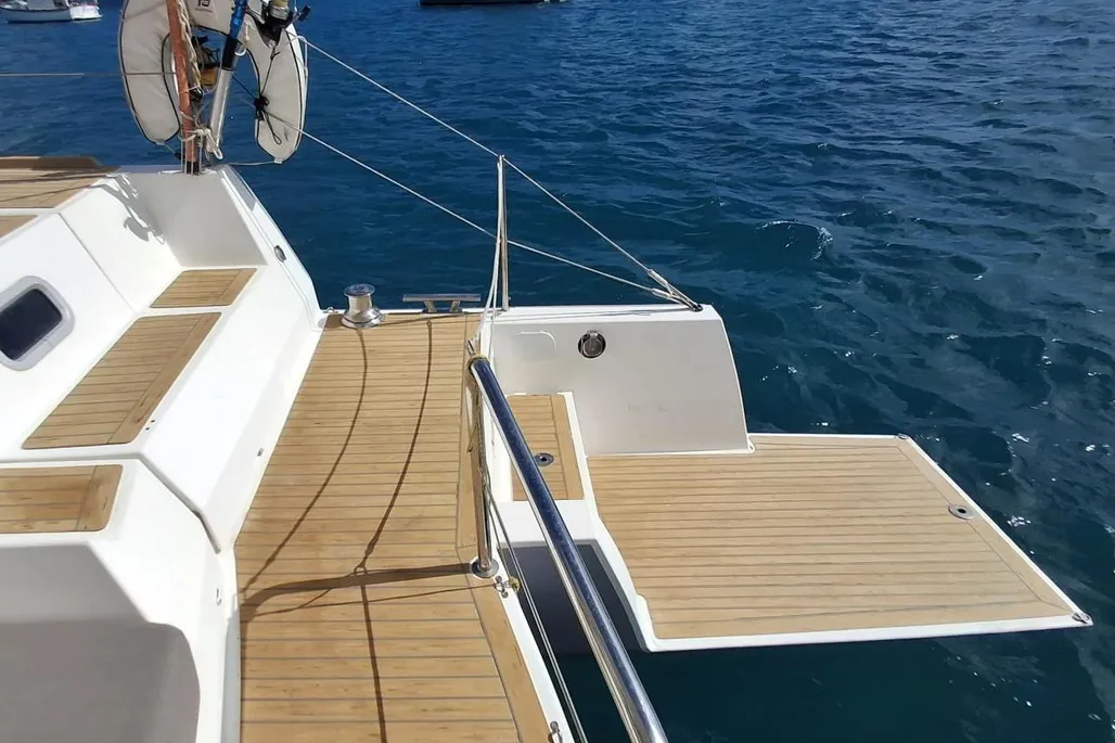 Douche de pont avec eau chaude/froide sur le flotteur bâbord et tribord avec main courante