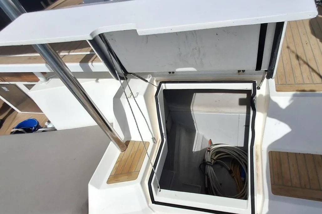 Accès au treuil et au puits de chaîne via un panneau horizontal