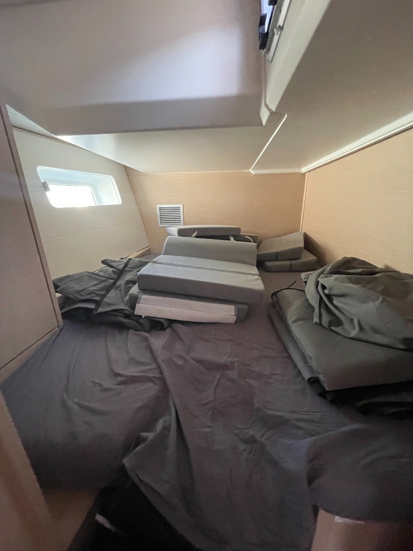 Cette version est proposée dans une configuration idéale de 3 cabines et 2 salles d’eau, complétée par un grand espace de rangement (sellier) ainsi qu’une cabine skipper indépendante.