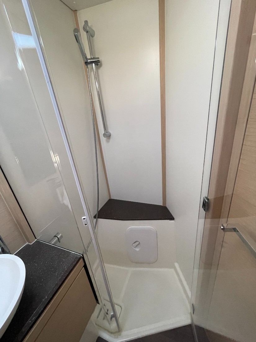 The interior, finished in grey cedar, offers a modern, warm and bright atmosphere, perfectly suited to life on board for long periods. The generous proportions of the saloon and cabins allow you to welcome family and friends in remarkable comfort.
